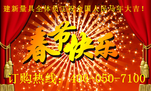春節即將來臨,在此建新量具總經理劉超攜公司全體員工送上我們誠摯的問候和衷心的祝福,預祝廣大客戶新春快樂,生意興隆,財源滾滾馬年大吉!祝愿各界新老用戶,友人——全家團圓,幸福安康。