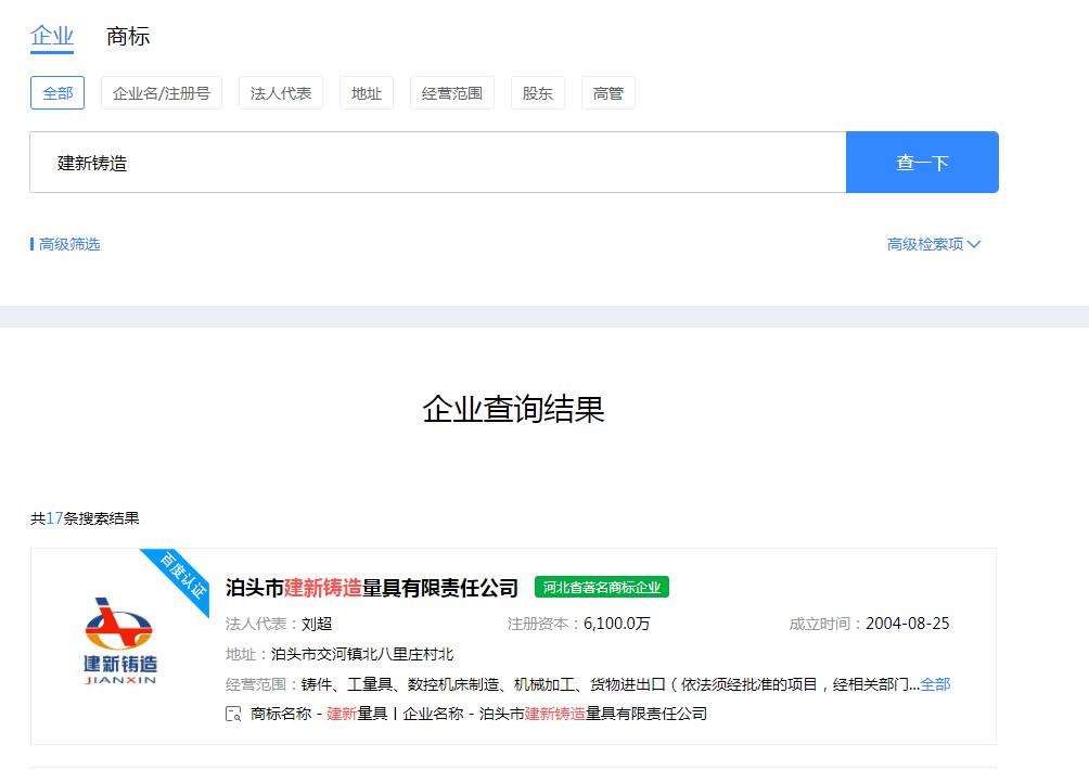 祝賀泊頭建新鑄造量具榮獲百度企業(yè)信譽(yù)認(rèn)證